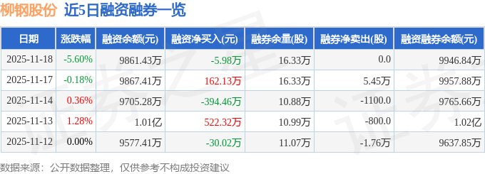 证券之星消息,截至2025年11月18日收盘,柳钢股份(601003)报收于5.23元,下跌5.6%,换手率1.24%,成交量31.81万手,成交额1.69亿元。