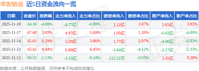 11月18日的资金流向数据方面,主力资金净流出4.77亿元,占总成交额6.9%,游资资金净流入2.12亿元,占总成交额3.07%,散户资金净流入2.65亿元,占总成交额3.83%。