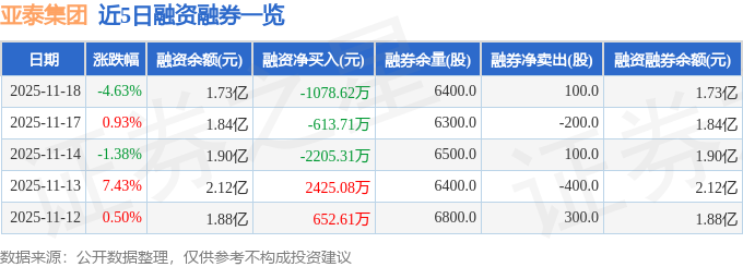 证券之星消息,截至2025年11月18日收盘,亚泰集团(600881)报收于2.06元,下跌4.63%,换手率4.65%,成交量150.41万手,成交额3.11亿元。