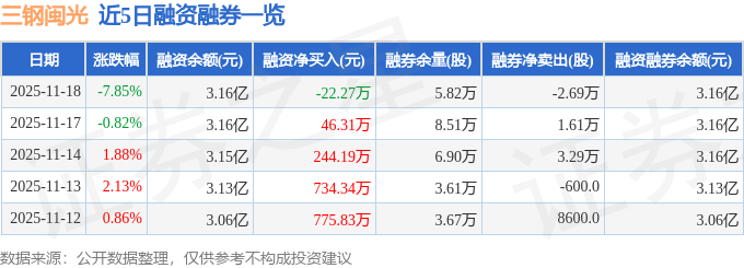 证券之星消息,截至2025年11月18日收盘,三钢闽光(002110)报收于4.46元,下跌7.85%,换手率2.65%,成交量64.25万手,成交额2.92亿元。