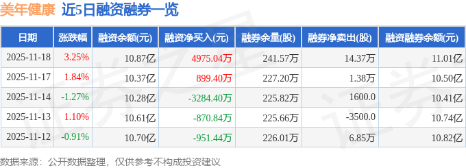 美年健康融资融券信息显示,融资方面,当日融资买入1.36亿元,融资偿还8617.98万元,融资净买入4975.04万元。融券方面,融券卖出14.97万股,融券偿还6000.0股,融券余量241.57万股,融券余额1379.36万元。融资融券余额11.01亿元。
