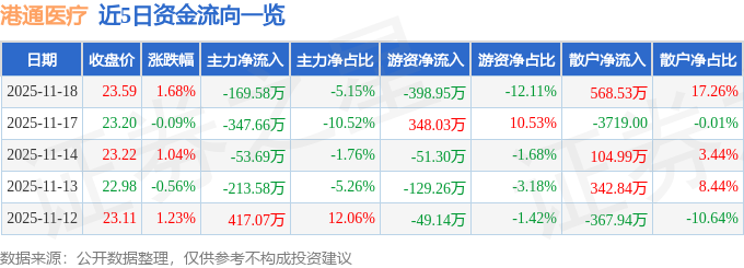 证券之星消息,截至2025年11月18日收盘,港通医疗(301515)报收于23.59元,上涨1.68%,换手率2.24%,成交量1.41万手,成交额3294.83万元。
