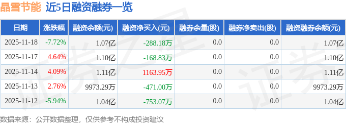 晶雪节能融资融券信息显示,融资方面,当日融资买入2562.36万元,融资偿还2850.54万元,融资净偿还288.18万元。融券方面,融券卖出0.0股,融券偿还0.0股,融券余量0.0股,融券余额0.0万元。融资融券余额1.07亿元。