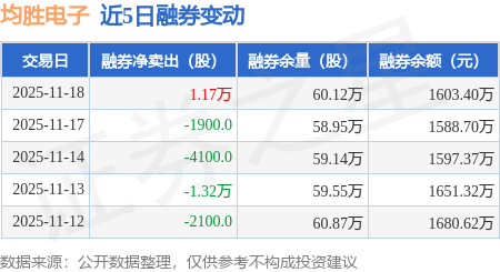 证券之星消息,11月18日,均胜电子(600699)融资买入9228.83万元,融资偿还7553.25万元,融资净买入1675.58万元,融资余额14.18亿元。