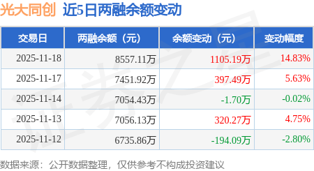 证券之星消息,11月18日,光大同创(301387)融资买入1585.34万元,融资偿还480.68万元,融资净买入1104.65万元,融资余额8519.33万元。
