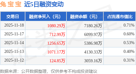 证券之星消息,11月18日,兔 宝 宝(002043)融资买入1521.52万元,融资偿还441.23万元,融资净买入1080.29万元,融资余额7180.26万元,近3个交易日已连续净买入累计3049.92万元,近20个交易日中有11个交易日出现融资净买入。