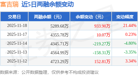 证券之星消息,11月18日,富吉瑞(688272)融资买入1277.75万元,融资偿还343.85万元,融资净买入933.9万元,融资余额5289.68万元,近20个交易日中有11个交易日出现融资净买入。