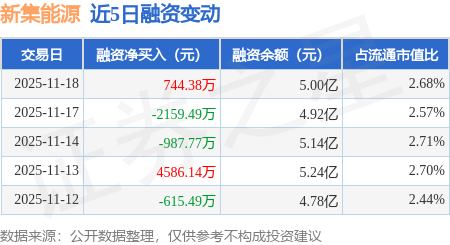 证券之星消息,11月18日,新集能源(601918)融资买入2816.55万元,融资偿还2072.18万元,融资净买入744.38万元,融资余额5.0亿元。