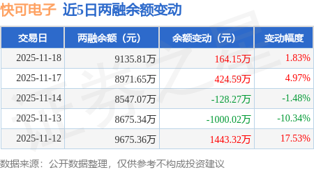证券之星消息,11月18日,快可电子(301278)融资买入3017.02万元,融资偿还2852.86万元,融资净买入164.15万元,融资余额9135.81万元,近20个交易日中有12个交易日出现融资净买入。