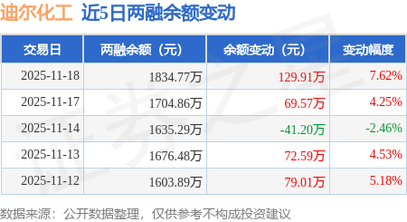证券之星消息,11月18日,迪尔化工(920304)融资买入523.98万元,融资偿还394.07万元,融资净买入129.91万元,融资余额1834.77万元,近20个交易日中有11个交易日出现融资净买入。