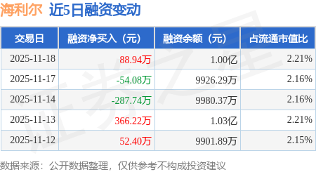 证券之星消息,11月18日,海利尔(603639)融资买入368.39万元,融资偿还279.45万元,融资净买入88.94万元,融资余额1.0亿元。