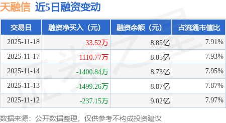 证券之星消息,11月18日,天融信(002212)融资买入3544.48万元,融资偿还3510.96万元,融资净买入33.52万元,融资余额8.85亿元,近20个交易日中有14个交易日出现融资净买入。