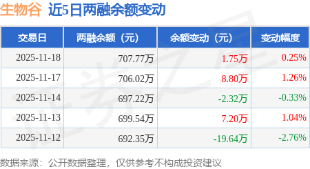 证券之星消息,11月18日,生物谷(920266)融资买入14.31万元,融资偿还12.57万元,融资净买入1.75万元,融资余额707.77万元。