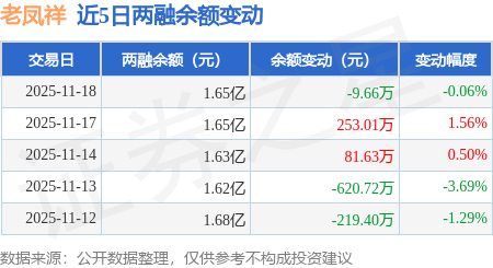 证券之星消息,11月18日,老凤祥(600612)融资买入769.62万元,融资偿还770.26万元,融资净卖出0.63万元,融资余额1.61亿元。