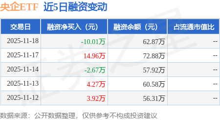 证券之星消息,11月18日,央企ETF(159959)融资买入5.5万元,融资偿还15.51万元,融资净卖出10.01万元,融资余额62.87万元,近20个交易日中有11个交易日出现融资净买入。