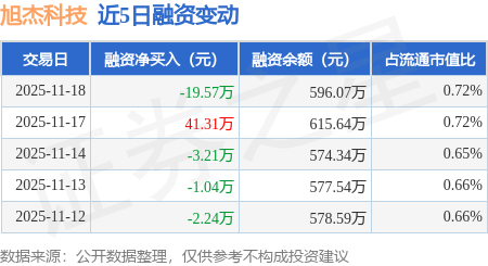 证券之星消息,11月18日,旭杰科技(920149)融资买入39.35万元,融资偿还58.92万元,融资净卖出19.57万元,融资余额596.07万元。