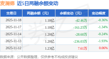 证券之星消息,11月18日,麦澜德(688273)融资买入310.37万元,融资偿还352.83万元,融资净卖出42.46万元,融资余额1.18亿元。