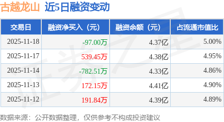 证券之星消息,11月18日,古越龙山(600059)融资买入1052.87万元,融资偿还1149.87万元,融资净卖出97.0万元,融资余额4.37亿元。