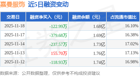 证券之星消息,11月18日,嘉曼服饰(301276)融资买入472.57万元,融资偿还595.56万元,融资净卖出122.99万元,融资余额1.68亿元。
