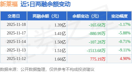 证券之星消息,11月18日,新莱福(301323)融资买入1437.56万元,融资偿还1603.24万元,融资净卖出165.68万元,融资余额1.39亿元。
