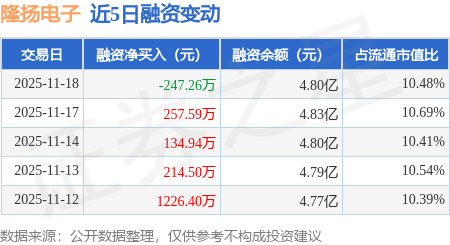 证券之星消息,11月18日,隆扬电子(301389)融资买入3353.69万元,融资偿还3600.95万元,融资净卖出247.26万元,融资余额4.8亿元。