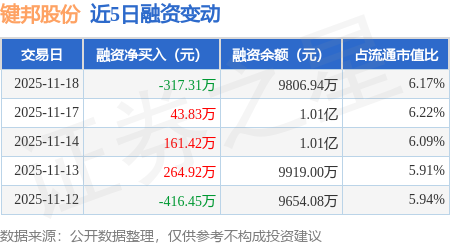 证券之星消息,11月18日,键邦股份(603285)融资买入400.34万元,融资偿还717.65万元,融资净卖出317.31万元,融资余额9806.94万元,近20个交易日中有12个交易日出现融资净买入。