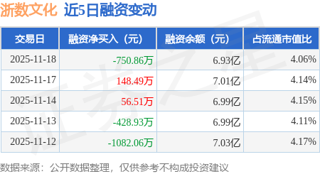 证券之星消息,11月18日,浙数文化(600633)融资买入2355.21万元,融资偿还3106.07万元,融资净卖出750.86万元,融资余额6.93亿元。