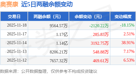 证券之星消息,11月18日,奥赛康(002755)融资买入1578.02万元,融资偿还3696.47万元,融资净卖出2118.44万元,融资余额9525.08万元,近20个交易日中有18个交易日出现融资净买入。