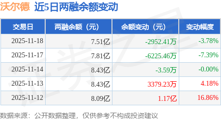 证券之星消息,11月18日,沃尔德(688028)融资买入7728.46万元,融资偿还1.07亿元,融资净卖出2952.41万元,融资余额7.51亿元,近20个交易日中有14个交易日出现融资净买入。