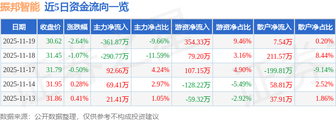证券之星消息,截至2025年11月19日收盘,振邦智能(003028)报收于30.62元,下跌2.64%,换手率1.72%,成交量1.22万手,成交额3745.42万元。