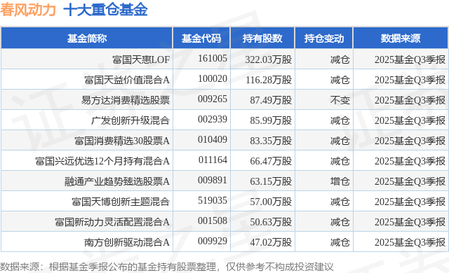 根据2025基金Q3季报公募基金重仓股数据,重仓该股的公募基金共108家,其中持有数量最多的公募基金为富国基金的富国天惠LOF。富国天惠LOF目前规模为226.61亿元,最新净值2.7863(11月18日),较上一交易日下跌0.67%,近一年上涨14.96%。该公募基金现任基金经理为朱少醒。