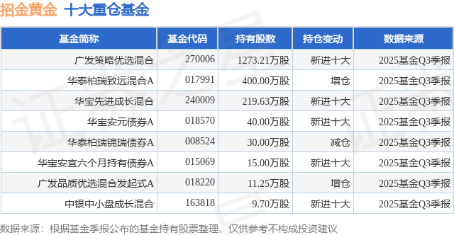 重仓招金黄金的公募基金请见下表: