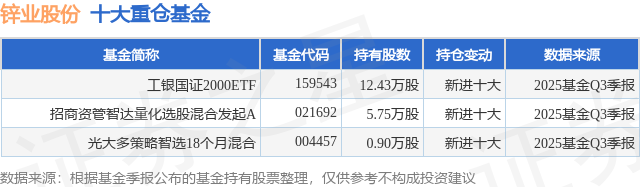 重仓锌业股份的公募基金请见下表: