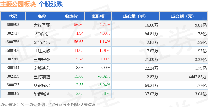 证券之星消息,11月19日主题公园板块较上一交易日下跌0.36%,华侨城A领跌。当日上证指数报收于3946.74,上涨0.18%。深证成指报收于13080.09,下跌0.0%。主题公园板块个股涨跌见下表: