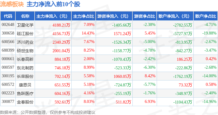 从资金流向上来看,当日流感板块主力资金净流出16.69亿元,游资资金净流出1.34亿元,散户资金净流入18.03亿元。流感板块个股资金流向见下表: