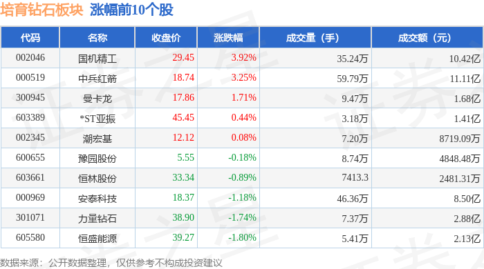 从资金流向上来看,当日培育钻石板块主力资金净流出1.87亿元,游资资金净流出1.65亿元,散户资金净流入3.52亿元。培育钻石板块个股资金流向见下表: