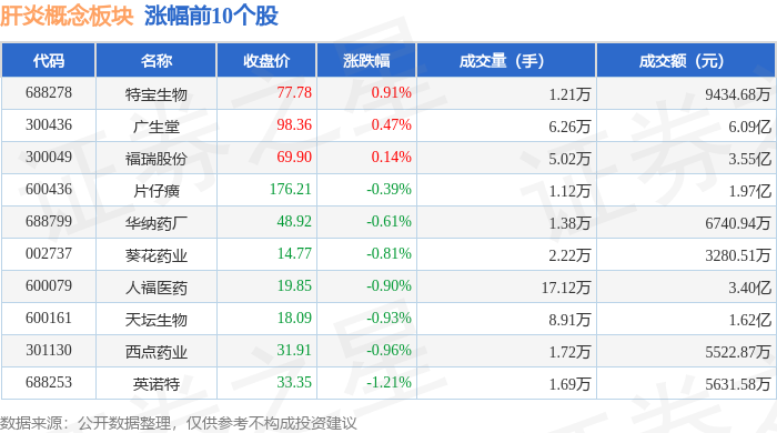 证券之星消息,11月19日肝炎概念板块较上一交易日下跌0.93%,*ST双成领跌。当日上证指数报收于3946.74,上涨0.18%。深证成指报收于13080.09,下跌0.0%。肝炎概念板块个股涨跌见下表: