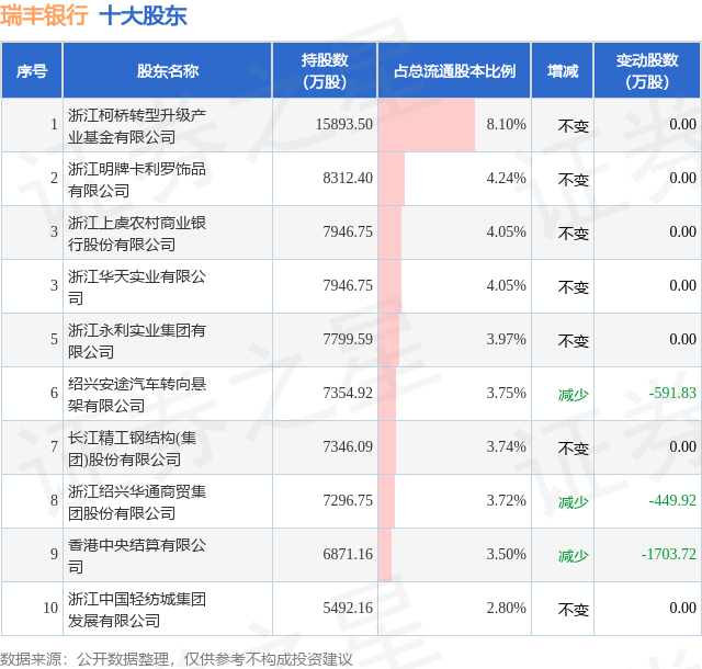 根据瑞丰银行2025年三季报公布的十大股东详情如下: