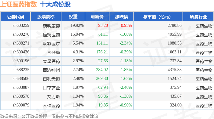 资金流向方面,上证医药(000037)指数成份股当日主力资金净流出合计10.48亿元,游资资金净流入合计7516.2万元,散户资金净流入合计9.73亿元。成份股资金流向详情见下表:
