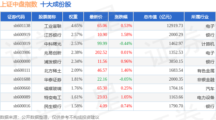 上证中盘(000044)指数十大成份股详情如下: