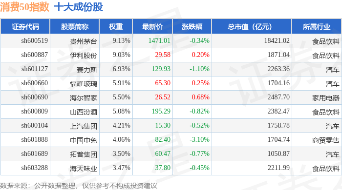 资金流向方面,消费50(000126)指数成份股当日主力资金净流出合计19.74亿元,游资资金净流入合计2.66亿元,散户资金净流入合计17.07亿元。成份股资金流向详情见下表: