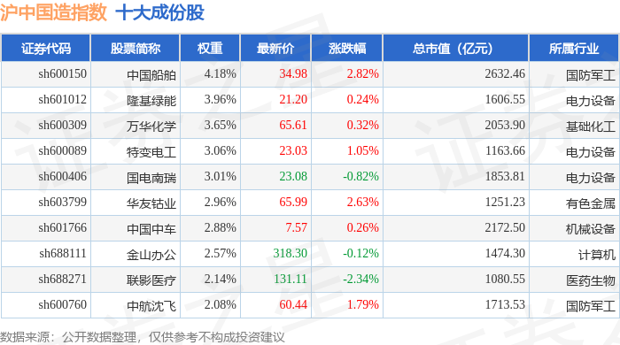 证券之星消息,11月19日,沪中国造(000161)指数报收于1737.09点,跌0.13%,成交974.33亿元,换手率1.59%。当日该指数成份股中,上涨的有43家,亚星锚链以10.02%的涨幅领涨,下跌的有103家,迈信林以10.36%的跌幅领跌。