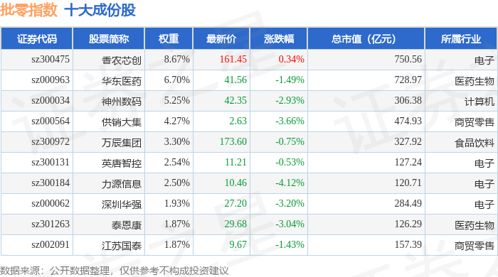 资金流向方面,批零指数(399236)成份股当日主力资金净流出合计18.04亿元,游资资金净流入合计4.14亿元,散户资金净流入合计13.9亿元。成份股资金流向详情见下表: