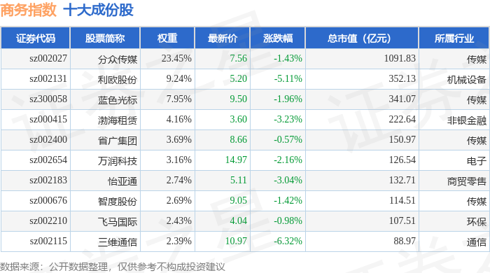 商务指数(399242)十大成份股详情如下: