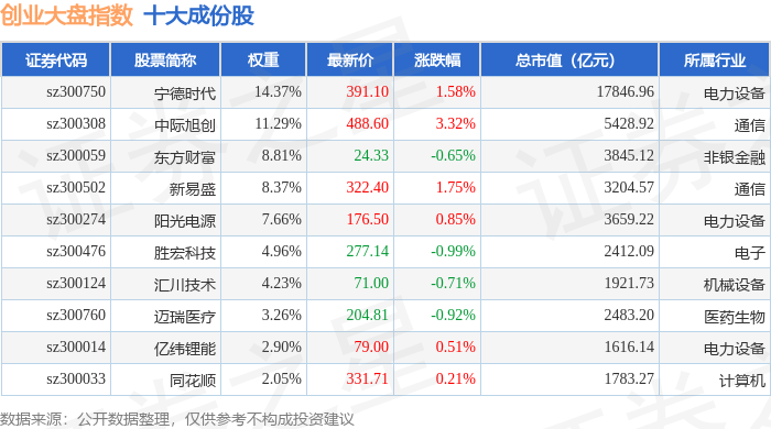 创业大盘(399293)指数十大成份股详情如下: