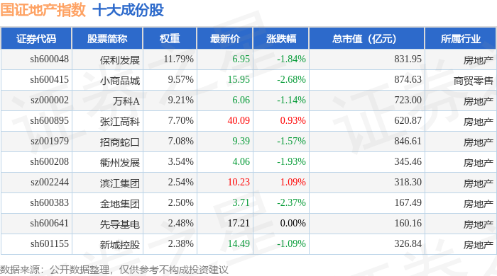 资金流向方面,国证地产(399393)指数成份股当日主力资金净流出合计3.69亿元,游资资金净流出合计2109.82万元,散户资金净流入合计3.9亿元。成份股资金流向详情见下表: