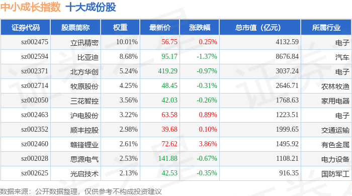 中小成长(399602)指数十大成份股详情如下: