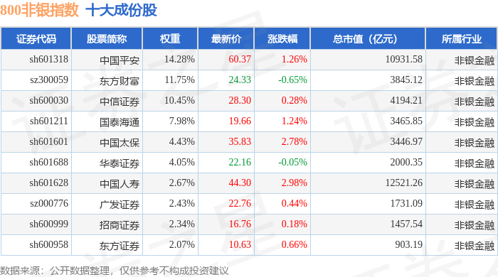 800非银(399966)指数十大成份股详情如下: