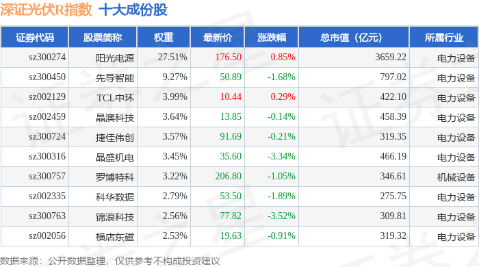 深证光伏R(470035)指数十大成份股详情如下: