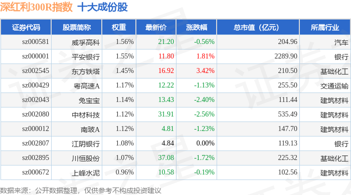 证券之星消息,11月19日,深红利300R(470062)指数报收于8100.96点,跌0.54%,成交1236.05亿元,换手率1.31%。当日该指数成份股中,上涨的有77家,科思股份以7.98%的涨幅领涨,下跌的有217家,瑞达期货以9.99%的跌幅领跌。
